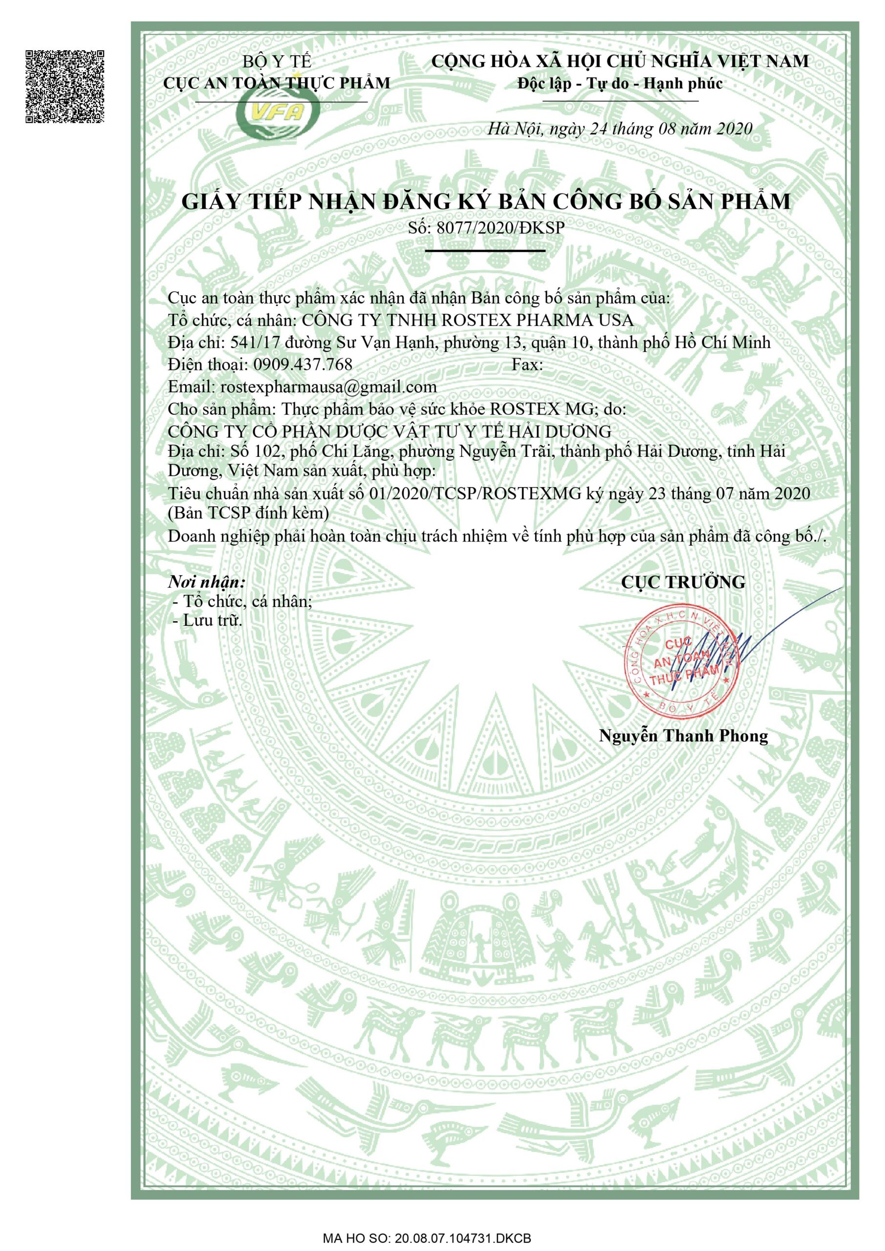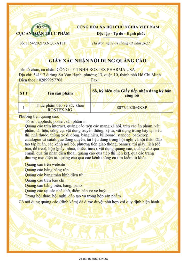 Tên công ty: CÔNG TY TNHH ROSTEX PHARMA USA